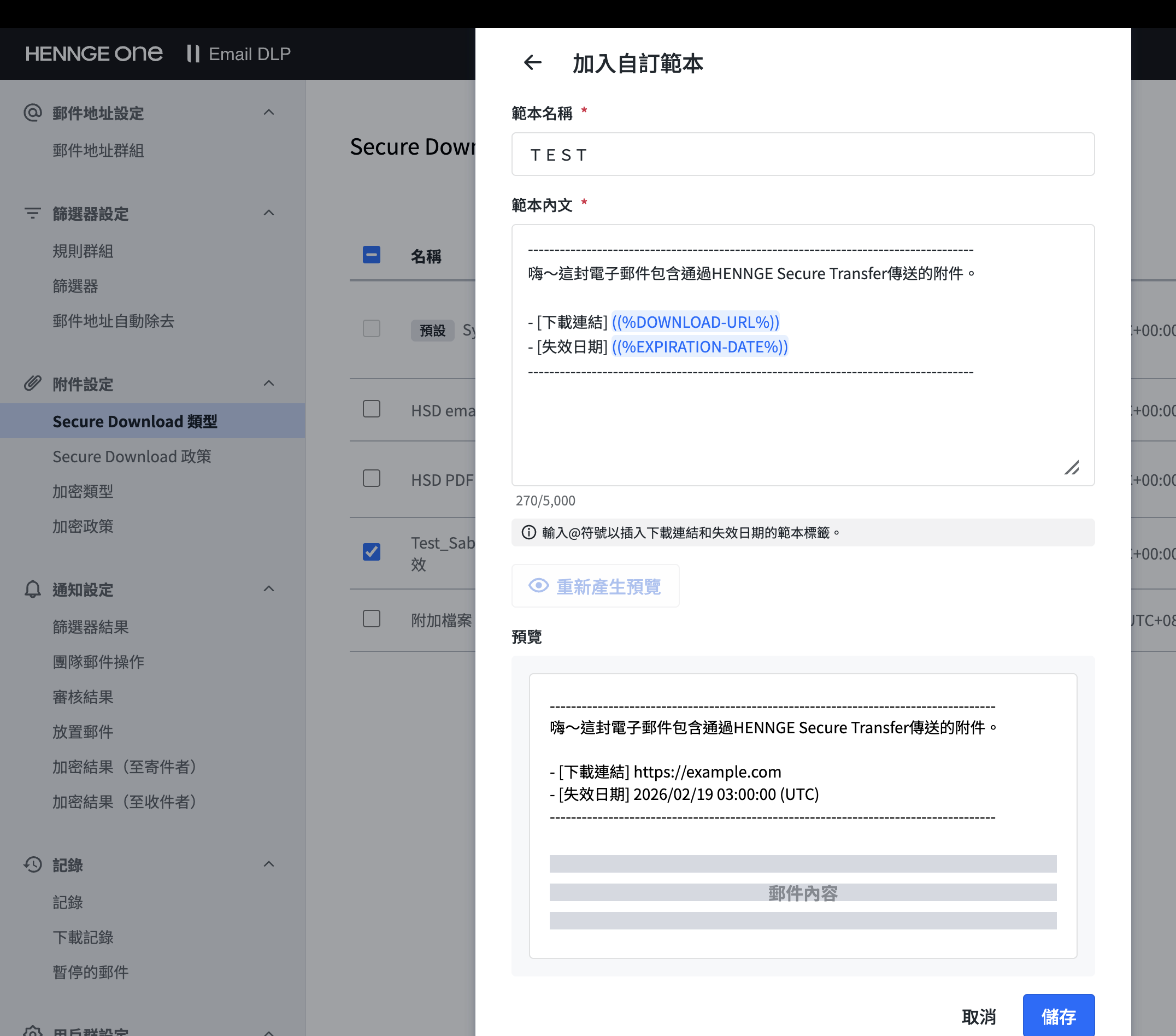 過去僅能使用固定文案,更新後可自由設定通知內容。自訂範本可依不同的 Secure Download 類型進行設定,不僅能加入貴公司專屬的說明與訊息,也可用於多語言並列等用途!