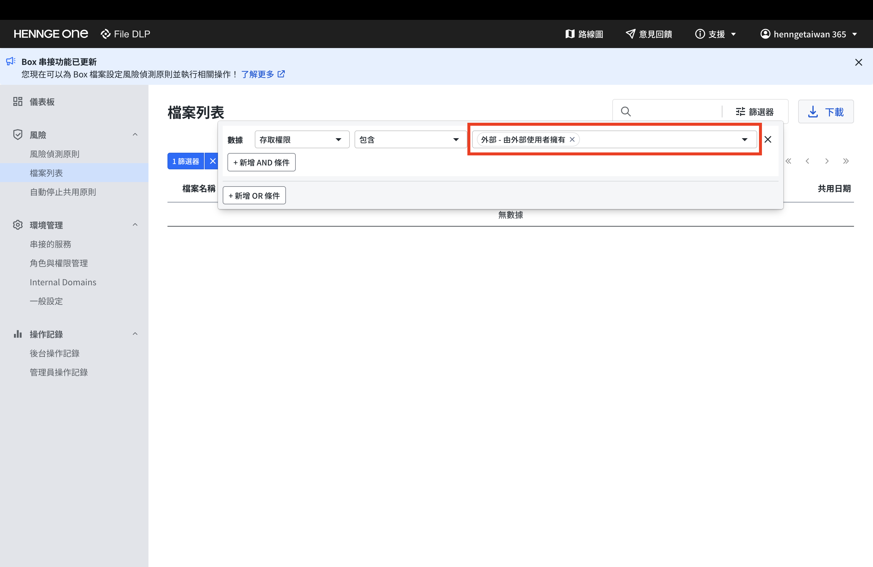 為了「提供更精準風險判定」此次更新將內部/外部判定標準的做變,不同企業的內部檔案數量與外部檔案數量可能會出現較大波動!