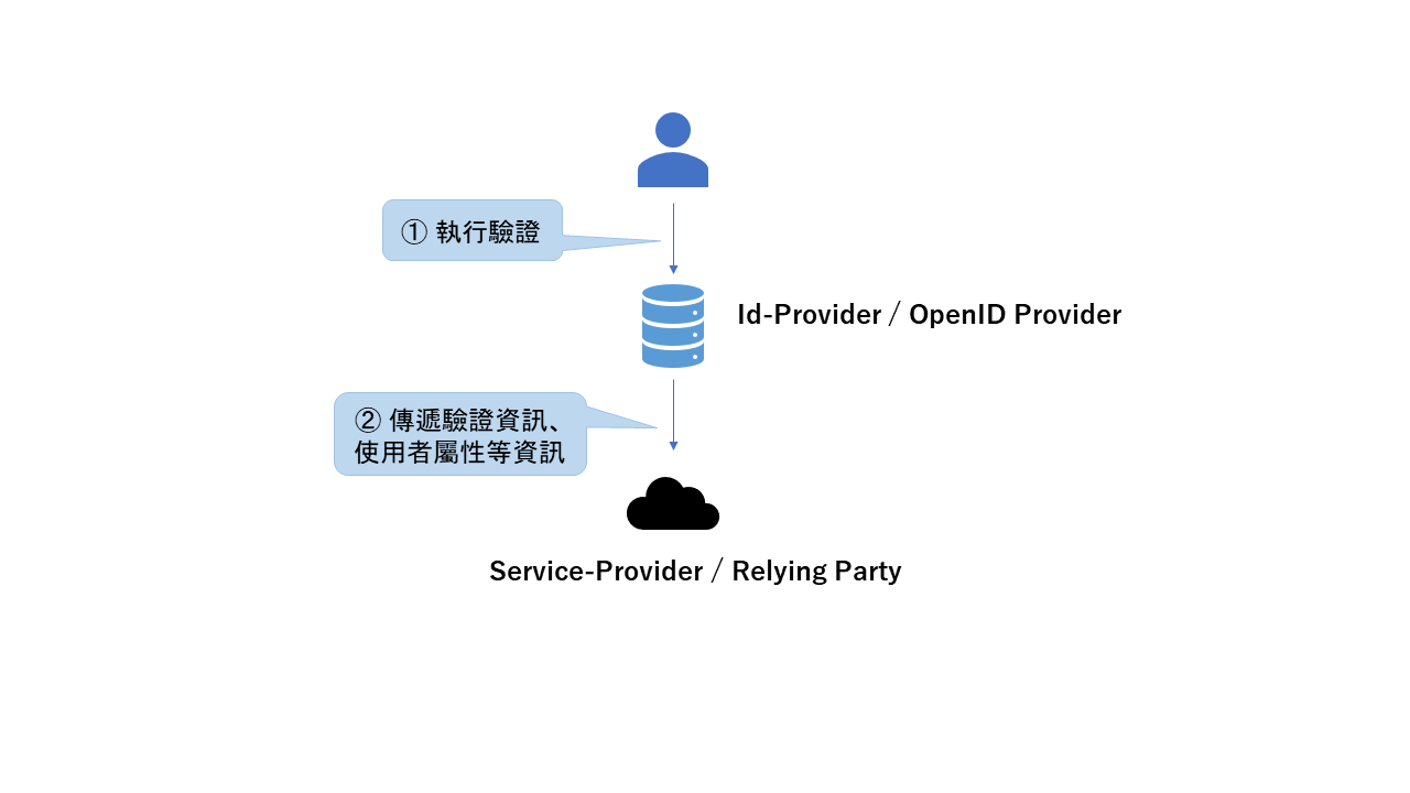 1. 在使用單一登入協議的環境裡如同以下示意圖,使用者會先向身份提供者做身份的驗證,再透過其驗證結果登入到服務提供者的系統裡。